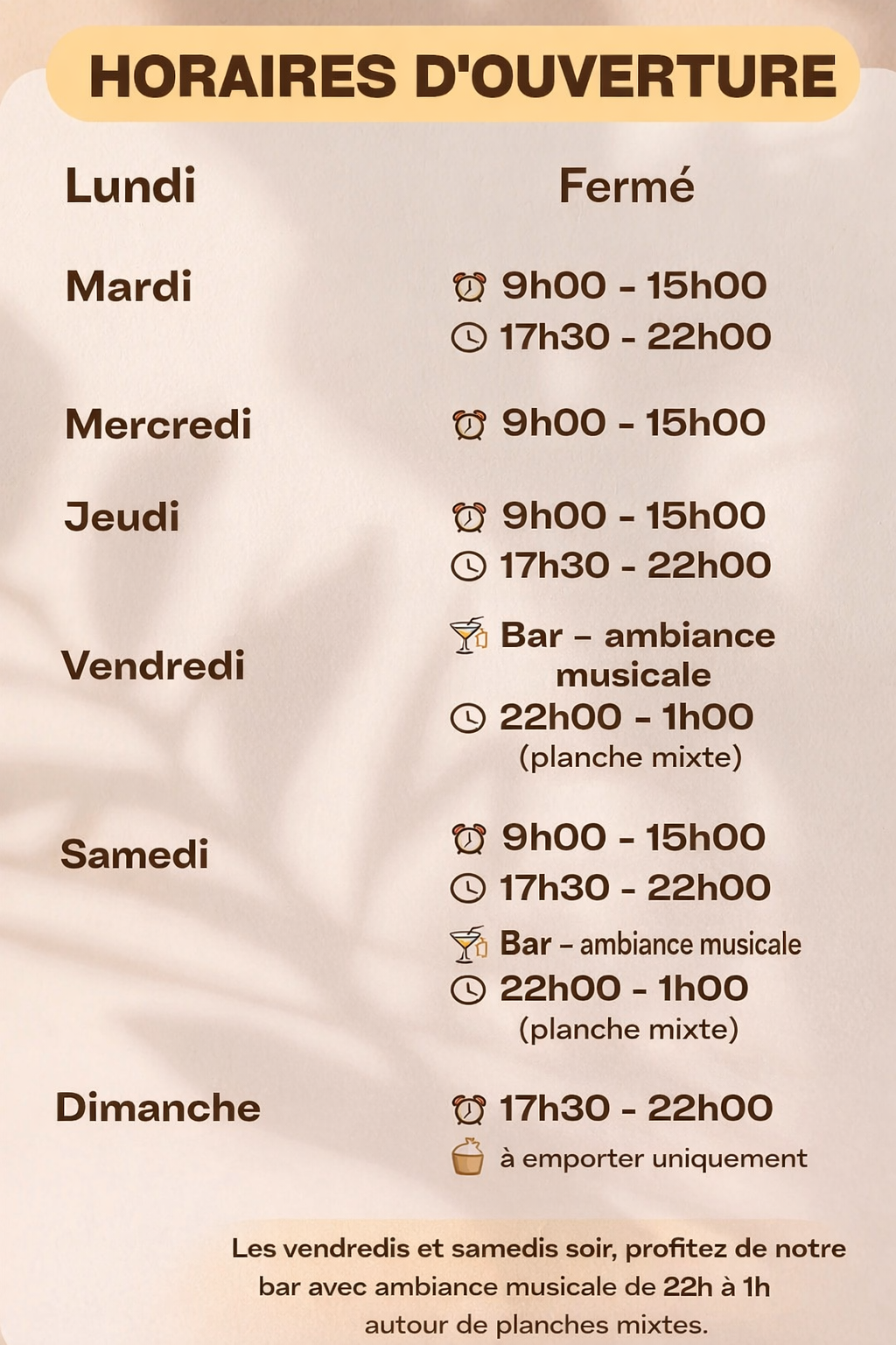 Notre équipe vous accueille avec le sourire, dans un cadre simple et chaleureux, où convivialité et partage sont au cœur de notre philosophie.